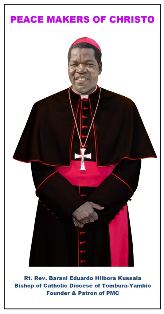 Praise be to the most gracious God. My Love and blessings to all the members of the Catholic Diocese of Tombura-Yambio, Peace Makers of Christo, our Partners, and beneficiaries. With immense joy, I dedicate PMC to the Most Holy God and Our Lady of Peace. I thank the Almighty God for choosing me as an instrument to found PMC. Jesus Christ our Lord has been blessing PMC with many dedicated vocations. With the guidance of the Holy Spirit and the prayer support of Our Lady of Peace, PMC is spreading the peace of Christ to most unreached parts of the…..